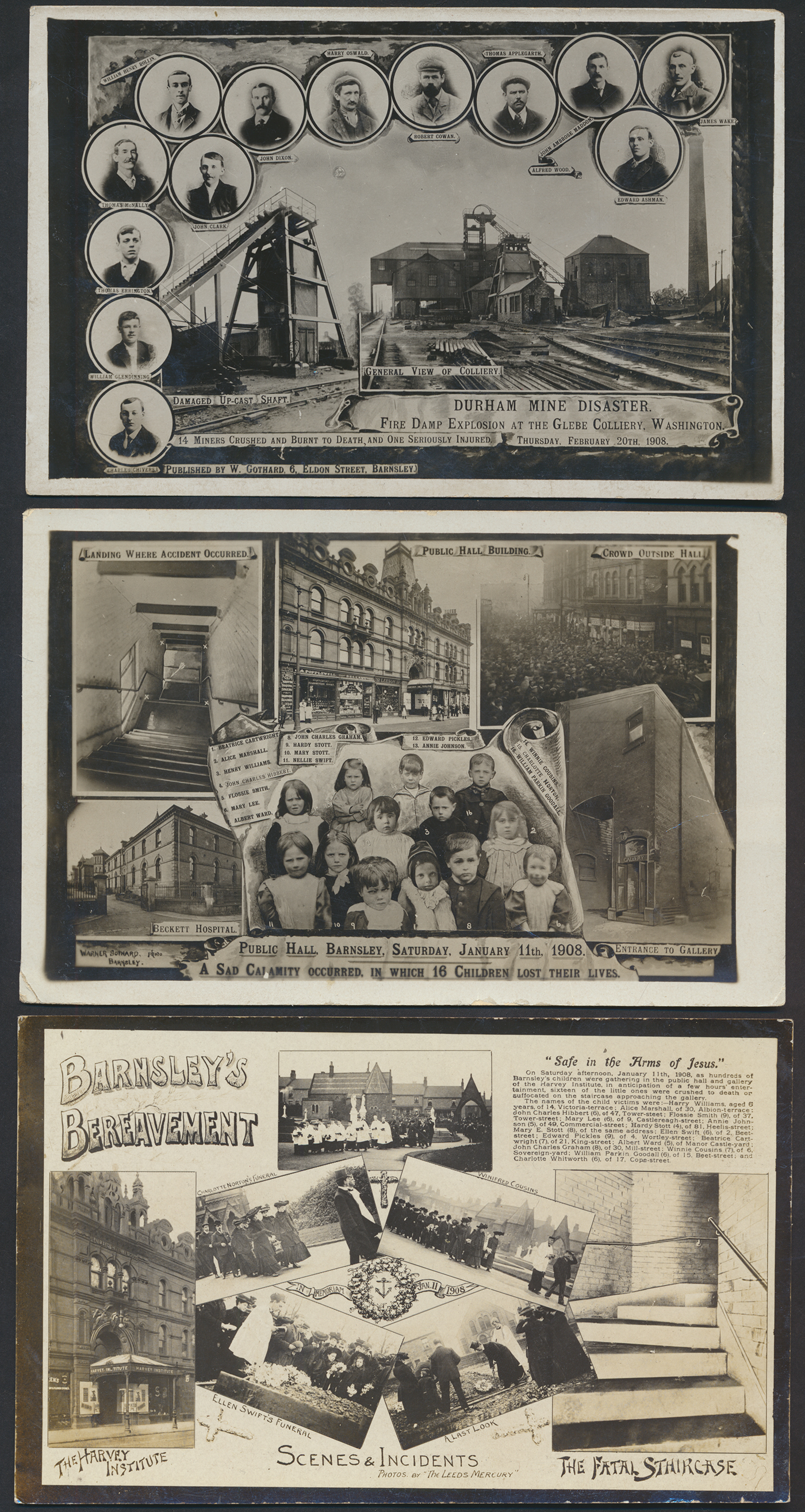 Now we move onto Postcards, and Lot 158 which contained an excellent range of social history cards including disasters and royal visits, but what wasn’t a disaster is the eventual hammer price which reached £875.