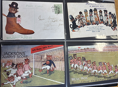 Our next lot comes from our postcard section, a lovely range featuring renowned postcard artist Louis Wain, a pioneer of anthropomorphic art which I imagine has in various ways inspired artists all the way up to the digital age of today, kept in a nicely well looked after album, any collector would be lucky to be able to add this collection to their own, and one lucky buyer has done that with Louis Wains art hitting a hammer price of £1500.