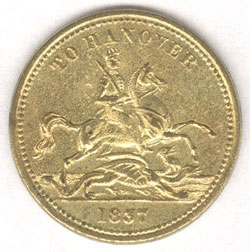 We often get enquiries from people selling coins, who ask our experts advice about unusual items in coin collections. A common enquiry is about a gold coloured gaming token inscribed “TO HANOVER”.