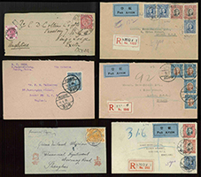 In terms of mixed lots, Lot 32 was of particular interest to bidders in the auction. With over 170+ covers, there was quite a bit to look through, noting an 1899 China to GB I.P.O. (Imperial Post Office) cover front to Devon, a group of three covers and one card sent during the US occupation of Vera Cruz and a 1921 Dutch East Indies underpaid local cover bearing the scarce 'POST / KANTOOR / BATAVIA / De Kantoorchef' 2½c provisional cachet (the letter rate had increased effective Feb 1921 from 10c to 12½c, with a minimum 2½c levied for missing postage, leading to a shortage of the 2½c value). With an initial estimate of £200, enthusiastic bidding brought the final hammer price up to £975.
