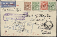 Another attractive airmail cover, 1932 England to Cyprus First Flight, sold as part of Lot 120, a Cyprus postal history collection. With bidding starting at £575, the lot eventually sold for £1,250.