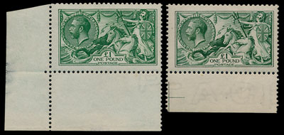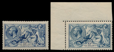 The highlight of the Great Britain section of the auction included a superb range of Seahorse stamps from Waterlow, De La Rue & Bradbury Wilkinson printings with many better shades. High prices were achieved for De La Rue 2/6d Cinnamon-brown, brown & reddish-brown.