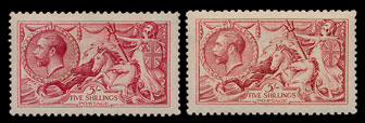 5/- Waterlow rose-carmine & De La Rue pale-carmine.
