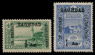 From same source, a collection of overprints from the British 1917 occupation of Baghdad sold at similar levels. A 1917 Lighthouse Garden ½a on 10pa sold for £990 (estimate £450) & an Old GPO 1a on 20pa sold for £1680 (estimate £400).
