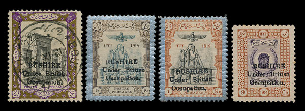 In the August Stamp Auction a collection of overprinted stamps from the British 1915 Occupation of Bushire achieved excellent prices, many selling at over twice the auction estimates. More information on the stamps is on our website here. The success of the sale demonstrates the importance of buying top quality stamps with appropriate expertisation. Amongst the lots an Ahmed Mirza range to 3kr sold for £1800 (estimate £600), a Coronation 9ch sold for £1,200 (estimate £400), a 1kr sold for £1,200 (estimate £500), a 5kr sold for £1,080 (estimate £900) & 1t sold for £1110 (estimate £450).