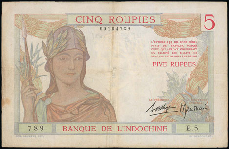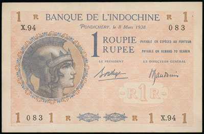 Moving on to the world banknotes section, highlights include this French India 1938 1 roupie realised £660 and this 1937 5 roupies sold for £690. This Palestine 1929 £1 achieved £324.
