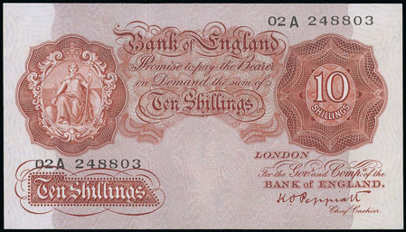We began with the English banknotes section and this Mahon £1 WWII Guernsey overprint realised £780, this Peppiatt 1948 10 shilling replacement sold for £900 and this Kentfield £50 first run with extremely low serial number achieved £348.