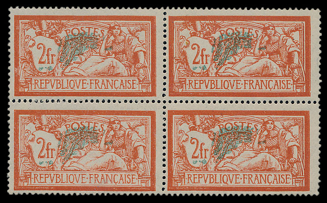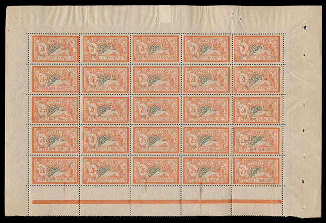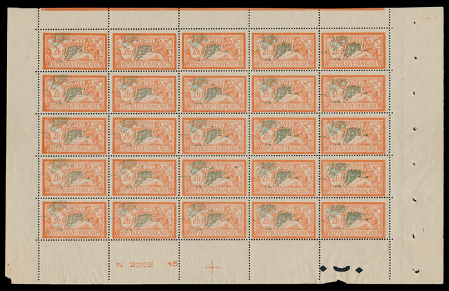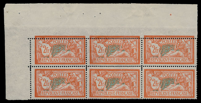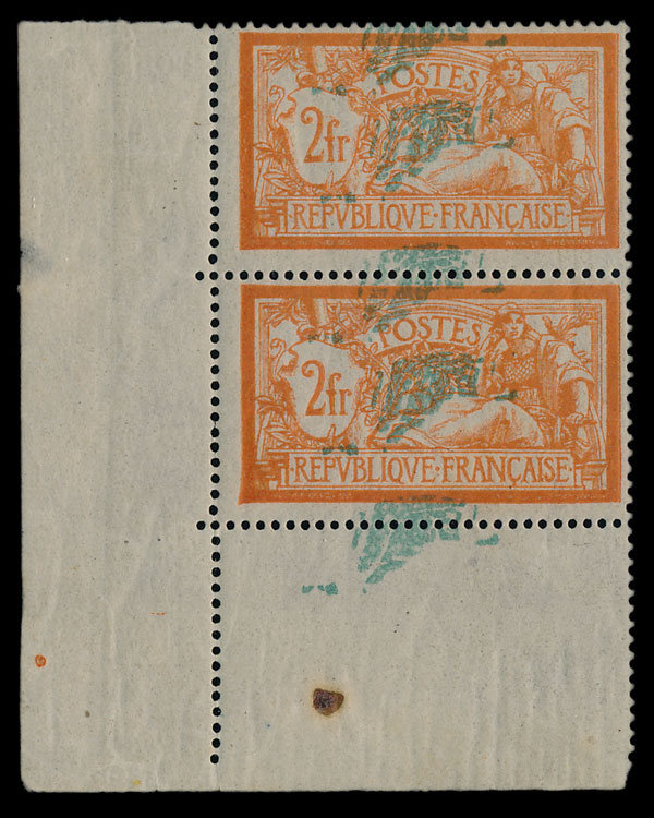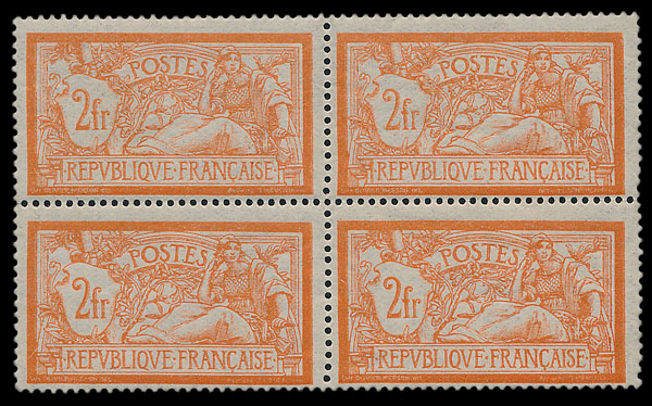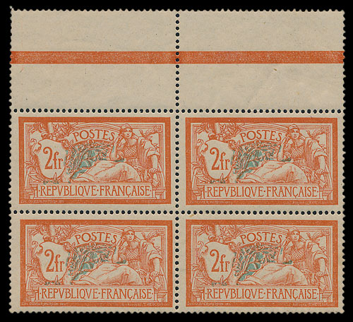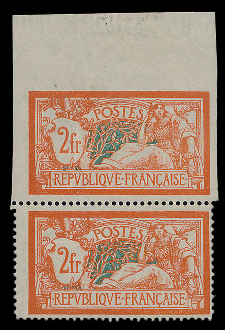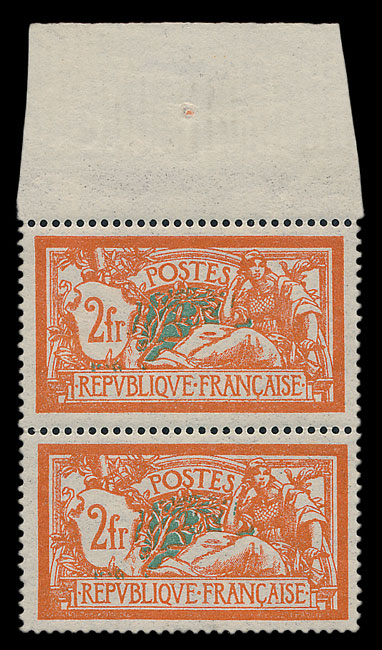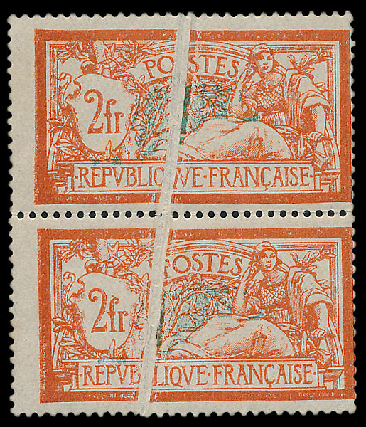 There is a listed variety on this stamp, the “ecusson brisé” (broken shield on the value tablet). I have looked for it in the past but never found one. Priced at €1800, here it is in a positional pair, UM.