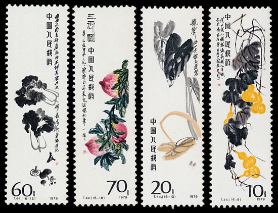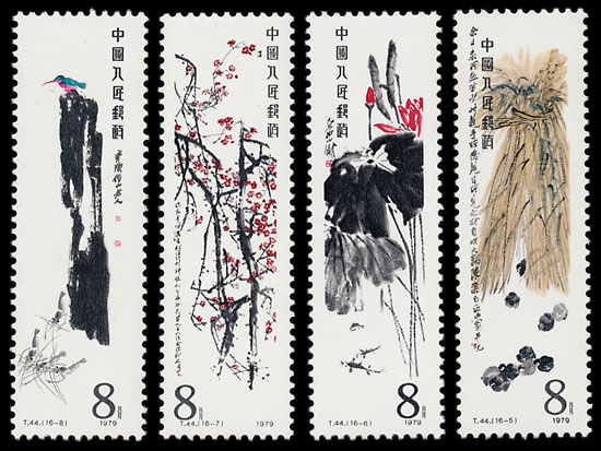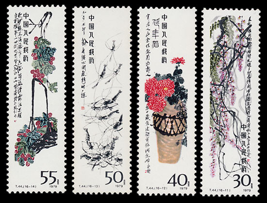 Throughout the course of his life Qi Baishi painted thousands of pictures, effortlessly combining traditional Chinese painting techniques with folk art to create his own distinct style. The stamps – celebrating his career as an artist - stay consistent with the dimensions of his actual screen paintings and alterations to his designs have been kept to a minimum, allowing his watercolours to be viewed as they were intended. As an artist he wanted to express profound meaning through ordinary subjects and the stamps chosen to honour his career reflect this.