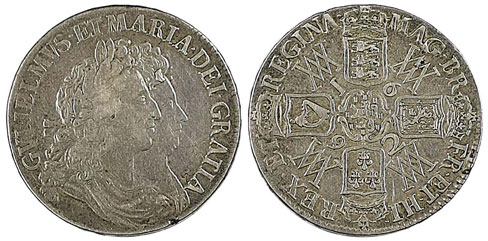 This 1692 crown, described as nearly very fine, sold for £900.