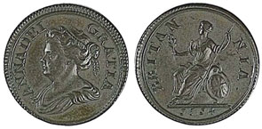 This Queen Anne 1714 pattern farthing, described as about extremely fine, achieved £600.