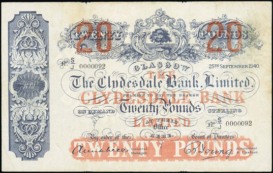 This Scotland Clydesdale Bank 1940 £20 sold for £192.