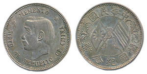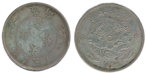 In the world coins section a number of coins from China were offered. This 1920 50 cents sold for £4,580, this 1911 10 cents achieved £4,680 and this c1912 20 cents (2chiao) realised £2,520.