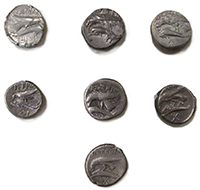 Moving on to the coin section of the sale, we had a fantastic collection of ancient coins, our first mention is lot 187 - Ancient Greece. Thrace. Black Sea Area. Istros. c400-350 BCE silver staters, obverse two young male heads facing, side by side, one upright, one inverted, reverse IETPIH sea eagle standing left on dolphin left, attacks with beak, different varieties, sold for an impressive £900.