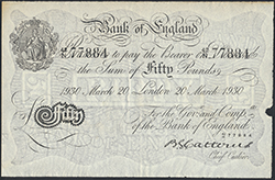 From our Banknotes section lot 146 B.G. Catterns. Operation Bernhard 1930 (20 Mar) £50 42N 77884 near extremely fine. (Duggleby B231) sold for a total of £240