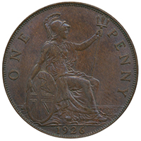 Lot 348 1926 penny modified effigy extremely fine, again attracted furious bidding and sold for £625!