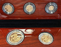 Our last mention is Lot 410 2021 gold proof FDC set of 5 with five sovereign, two sovereign, sovereign, half sovereign and quarter sovereign in Royal Mint presentation box, sold for £3900.