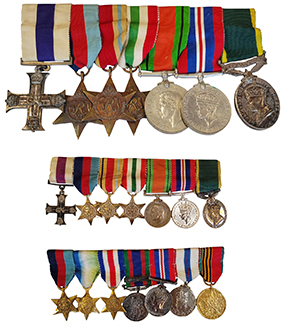 Lot 41 spotlighted a WWII Military Cross group of 7 to Lt. John McKenzie Porter of the 2nd Battalion The Cameronians, Scottish Rifles, MC reverse is marked 1943 (unnamed), 1939-45, Africa, Italy stars, Defence Medal and BWM, Territorial Efficiency Medal to Lt. J. McK. Porter. M.C. Cameronians, swing mounted as worn, plus swing mounted miniatures, Cameronians cap badge and patch with moto mutare vel timere sperno. Plus set of swing mounted miniatures with 1939-45, Atlantic, France and Germany stars, Canadian Volunteer Service Medal, War Medal, QEII silver Jubilee Medal and Soviet 40th Anniversary Medal, With copied recommendation for MC, sold for a respectable £1,250. To view the story of this hero’s exploits please visit our website.