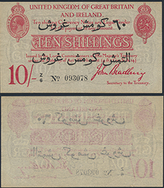 Moving on to our banknotes, we had some interesting pieces that attracted very competitive bidding, starting with lot 108, J.S. Bradbury. 10/- Dardanelles black Overprint Z/6 093078, which sold for an impressive hammer price of £875!