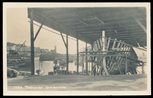 Small ship-building yards were a feature of many Cornish harbours. This yard is at Porthleven, near Helston. The card was published by A.H. Hawke of Helston and was mailed in 1936.