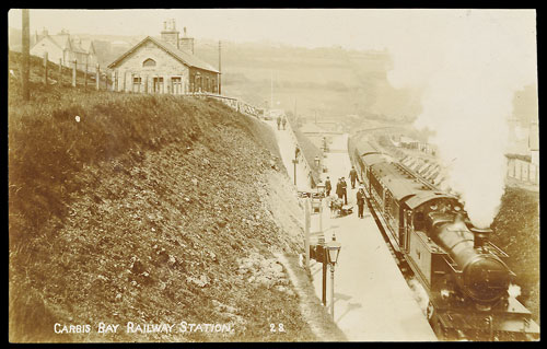 The single track branch line that connects St. Ives to the Penzance to London main line at St. Erth must be one of the most attractive in the country. It featured regularly in the introductory sequence to the BBC television series Great British Railway Journeys, presented by Michael Portillo. Here a steam train stops at the diminutive station at Carbis Bay. I have a copy of this card in my personal collection, as I am fortunate in having a holiday home only a few metres from the station.