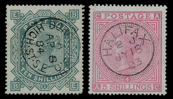 Lots 617 and 618, the 1867-83 10s and 5s respectively, are two incredibly fine examples of these particular issues. Both have lovely centrally struck cds and the 1883 ‘Halifax’ cds on the 5s could not be illustrated any clearer. We believe that you would be hard pressed to find many better examples of these stamps and our January 8th sale offers a perfect opportunity to put a crowning jewel into your collection!