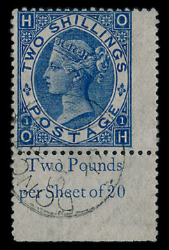 Lot 615, a fine 1867-80 2s deep blue with Doncaster cds and marg inscription is another very good example of a great stamp in superb condition.