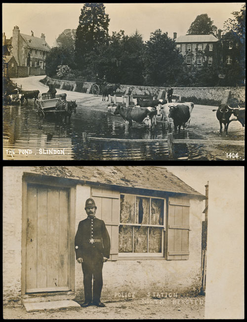 These 2 delightful rural RPs, one of the pond at Slindon and one of the police station at North Bersted, were part of a Sussex collection, from the Girling collection, which realised £4,012.