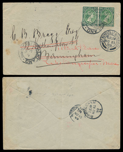 1906 letter to Birmingham with 1891-02 set (apart from 4d).