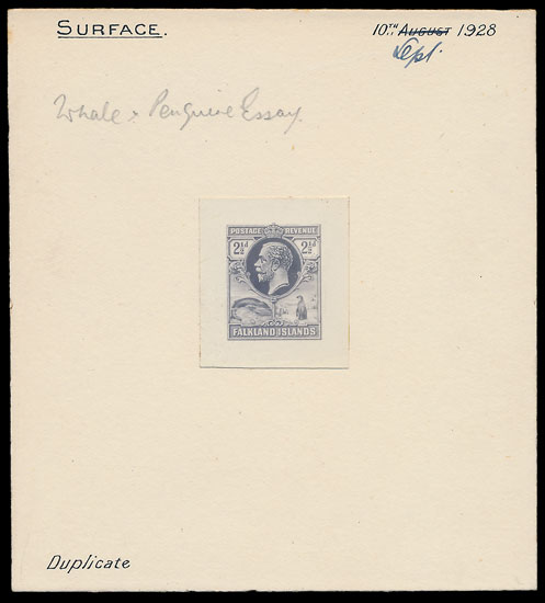 1929-36 Whale & Penguin 2½d composite essay on large card.