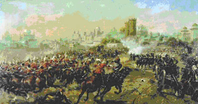 The 2nd Dragoon Guards charging during the relief of Lucknow.
