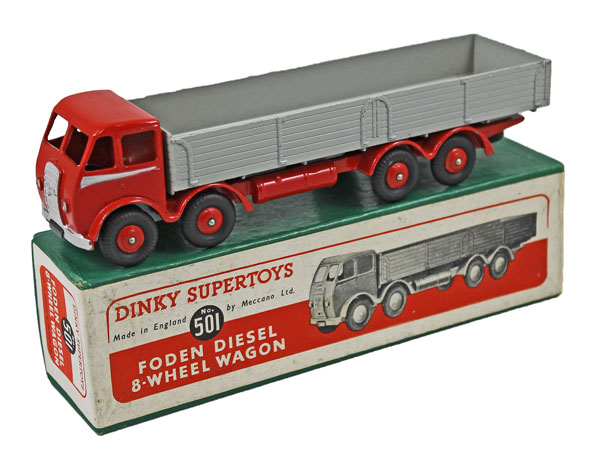 This Foden 8-Wheel diesel red/ grey wagon No. 501 is estimated at £250.