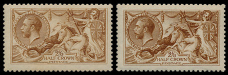 The 1915 DLR printing includes shades noting the scarce 2/6d cinnamon brown UM with certificate, 2/6d reddish brown (chestnut) UM with certificate.