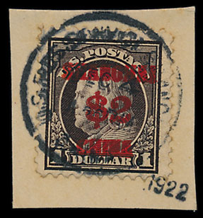 Foreign Post Offices in China including US Postal Agency in Shanghai 1919 $2 on $1 surcharge doubled.