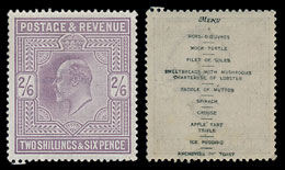 A very unusual King Edward VII 2/6d with advertising menu printed on the reverse sold for £240.