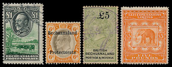 An unusual collection of Bechuanaland Revenues from Queen Victoria to King George V sold for £1,080.
