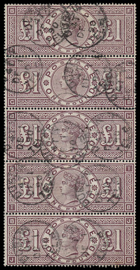The star of the Great Britain section was an 1884 £1 in strip of 5 which sold for £3840, well above the estimate of £1,800.