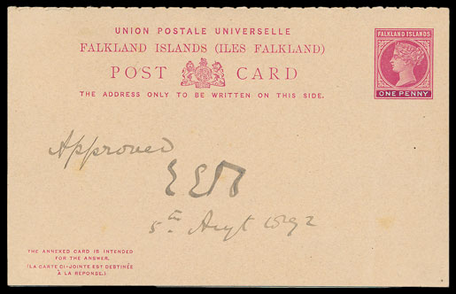 This Postal Stationery design for an 1892 UPU reply card sold for £1,980.