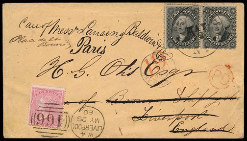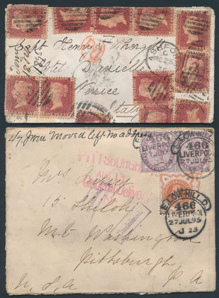 Some very attractive USA covers were on offer, with a 1851 cover to England & redirected to Paris with additional postage added, selling for £324.