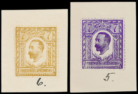 An interesting range of 7 1910 colour trials sold for £620.