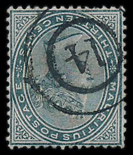 So if that wasn’t enough, imagine my surprise to examine a Mauritius stamp, SG 95, the 1880 watermark CC 13c slate Fine used with a no 14 in circles cancel. A good stamp anyway, priced by SG at £325, I had a close look to make sure there were no thins or faults, to discover the watermark is inverted.