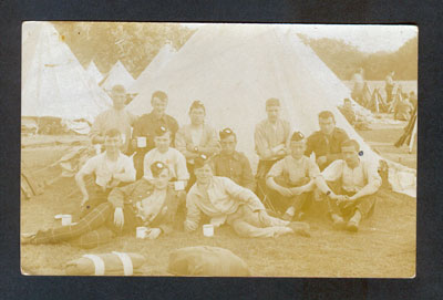William Bradford of Canterbury enlisted early in the 20th century in the Highland Light Infantry. The first photo is of a group of soldiers in front of bell tents with the reverse endorsed "Irish manoeuvres, Moor Park, Aug 1909".