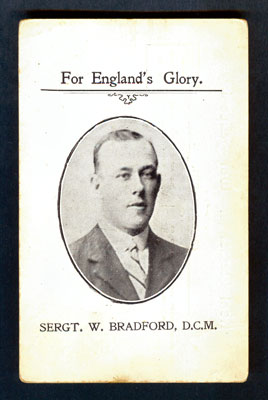 William Bradford must have been promoted to Sergeant in 1915. Included with the lot is a postcard with the title For England’s Glory printed by the Kent Messenger with 1915 handwritten on the reverse.