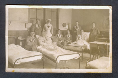 The final photograph with the lot is with Sergeant Bradford lying in a hospital bed with a nurse and 7 patients gathered round and marked Craigleith Hospital Nov 1917 on the reverse. It is not known if he was wounded or suffering from an illness.