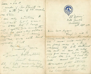 Ernest Shackleton, the Antarctic explorer, later to lead his own expedition, served as a lieutenant on board “Discovery”, under Captain Scott, on the 1901-3 National Antarctic Expedition and it was from the expedition’s winter quarters that he wrote to his friend, Kitty Pogson, the well-known London socialite. The letter, dated 30th September 1902, was offered in our July 14th 2004 sale, where it realised £4,370.