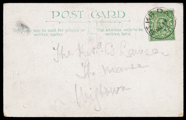 Lot 182 is a vignette card showing The Manse on Hirta, which had been built in 1830, when a new church was built at the eastern end of the village. This is a rare view card of St. Kilda, but what makes it even more desirable is that it postally used from St. Kilda. It bears the message below the illustration "How would this suit you when you want to retire? RG" It is addressed to The Revd G. Lawson, The Manse, Wigtown, which is a town in Dumfries and Galloway. The card bears the circular date stamp of ST. KILDA AUGUST 16 1913.