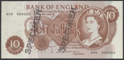 Lot 289 - J.Q. Hollom. 10/- A00 000000 overprinted "SPECIMEN" in black cameo capitals twice diagonally about uncirculated. (Duggleby B294s) Estimate £900
