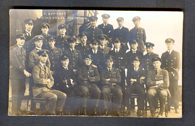 He was appointed Probationary Observer Officer (permanent) on H.M.S. Daedalus, the RNAS seaplane training school on Lee-on-Solent on 10th November 1917. He moved to H.M.A.S. Eastchurch as Observer Sub Lt on 22nd March 1918. When the R.N.A.S. and R.F.C. amalgamated to form the R.A.F. on 1st April 1918 he was appointed Lieutenant. He must have served on H.M.S. Argus as there are 2 group photos with the lot dated 24th November 1918.