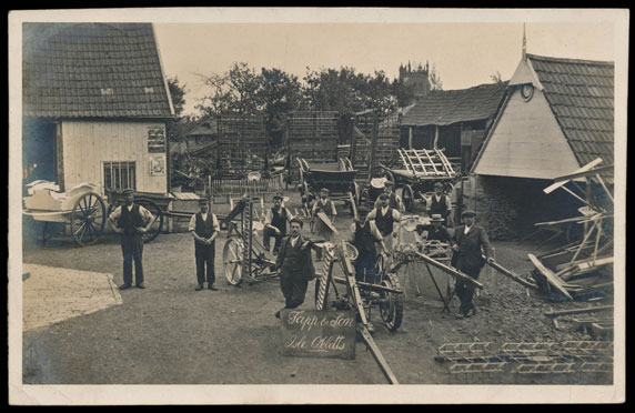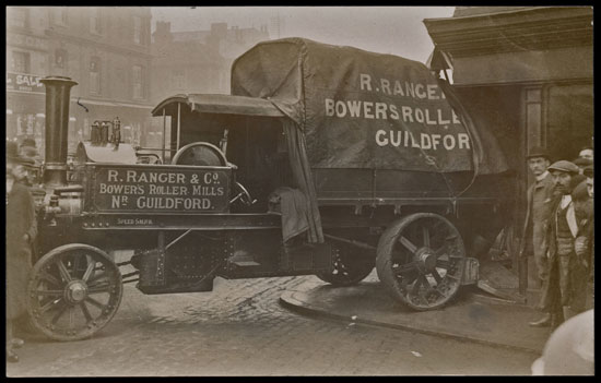 There was a strong section of Guildford area cards in the auction and these were very popular with the bidders. The main collection, estimated at £1,100, realised £2,640 and 2 dramatic RPs of an accident to a steam lorry made £114. Percy Lloyd was the local Guildford photographer and a collection of 500 of his local topos, estimated at £300, realised £1,740. Yorkshire was also well represented and a collection of Redcar in 2 albums, estimated at £330, eventually made £1,200, after intensive competition. An attractive collection of 650 Welsh cards included smaller settlements. Estimated at £320, it made £1,200.