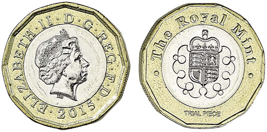 Lot 512 - 2015 £1 Royal Mint Trial Piece extremely fine. Estimate £40